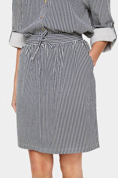The Zalinda Cotton Stripe Skirt by Saint Tropez, a perfect blend of casual elegance and comfort. Crafted from breathable, soft pure cotton, this skirt features a charming stripe pattern in the sophisticated Ice Nightsky Stripe colourway, adding a fresh, contemporary touch to your look.